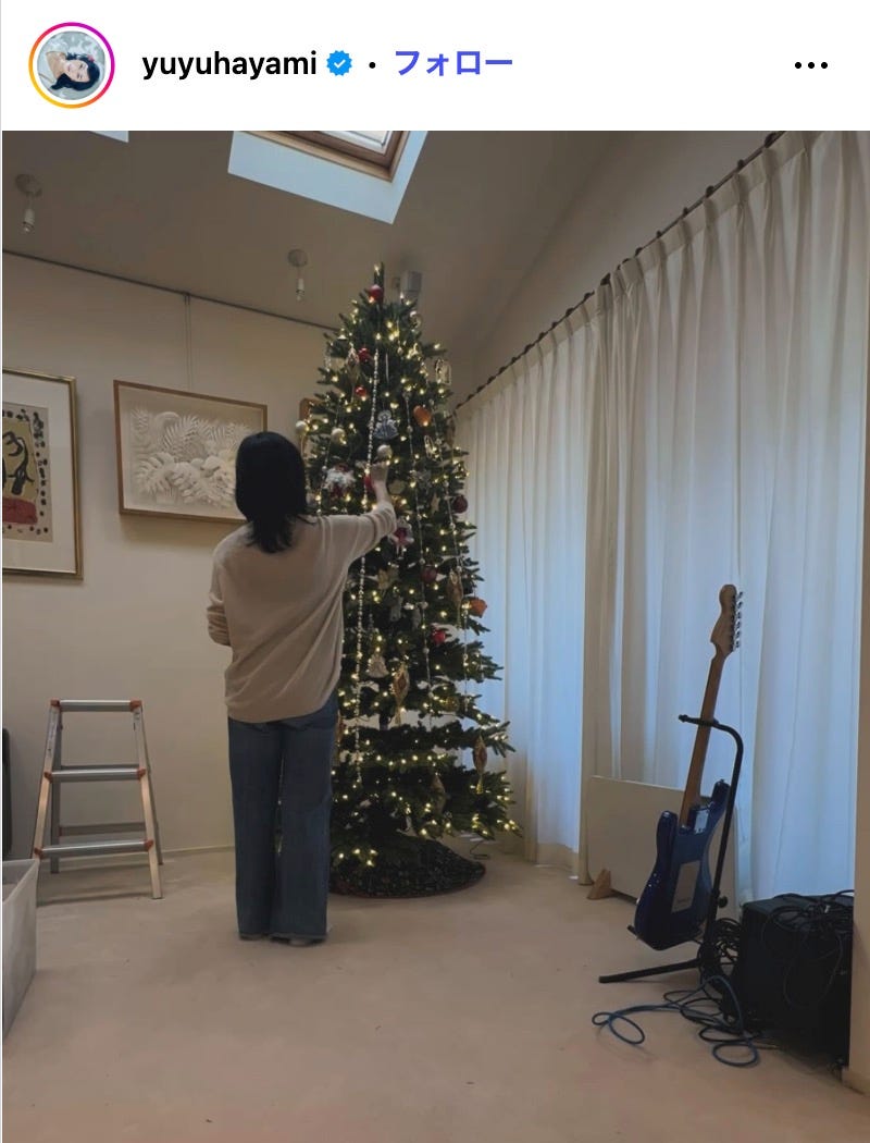 歌手の早見優が11月26日、自身のInstagramを更新。大きなクリスマスツリーを飾り付ける様子を...