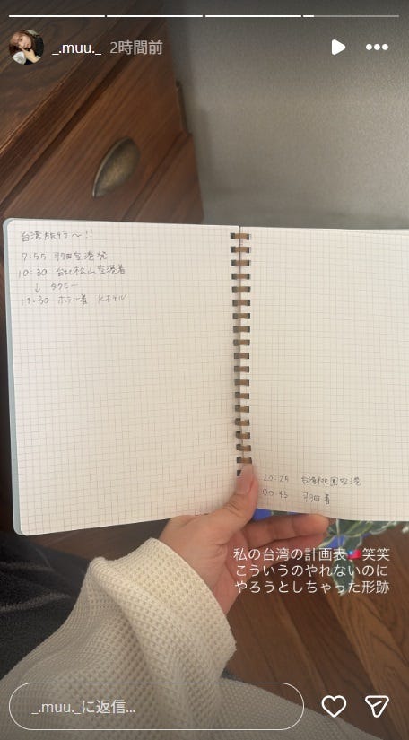 むくえな・むく、手書き台湾旅行計画表公開「可愛い字」「ワクワク感が伝わる」の声