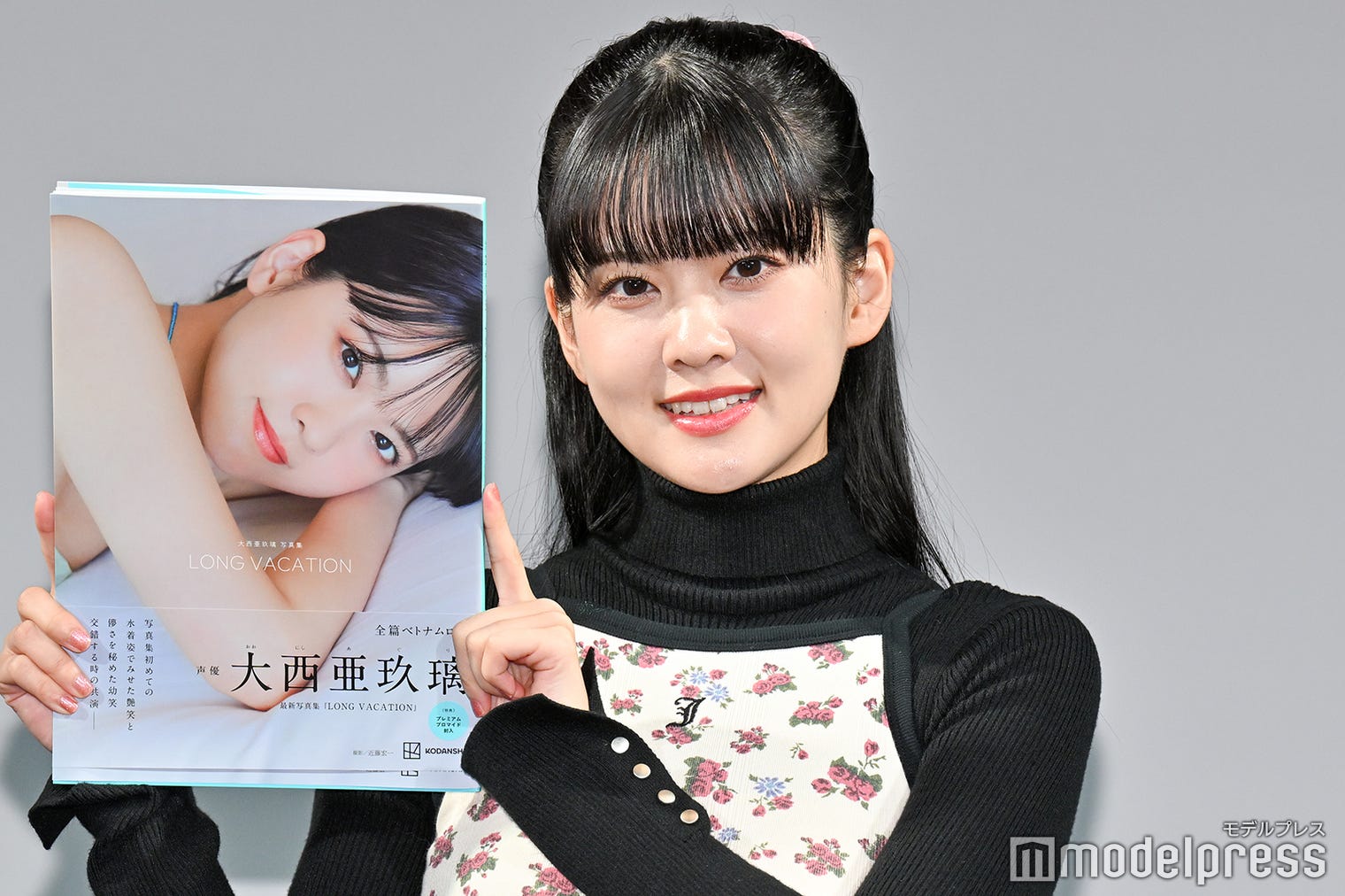 声優の⼤⻄亜玖璃が30日、都内で行われた写真集「LONG VACATION」(講談社)の発売記念会見...