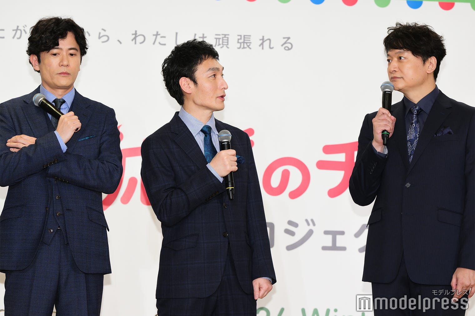新しい地図の稲垣吾郎、草なぎ剛、香取慎吾が30日、都内で開催された 「応援のチカラ プロジェクト」発...