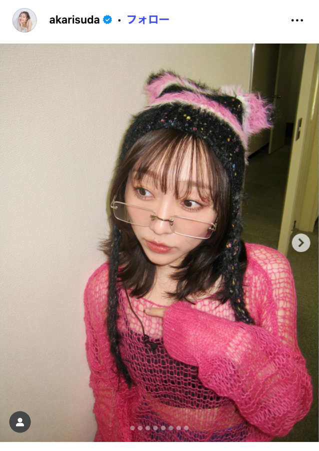 須田亜香里、透け感ニット&猫耳帽子で印象ガラリ「ギャップがたまらない」「着こなし最高」の声
