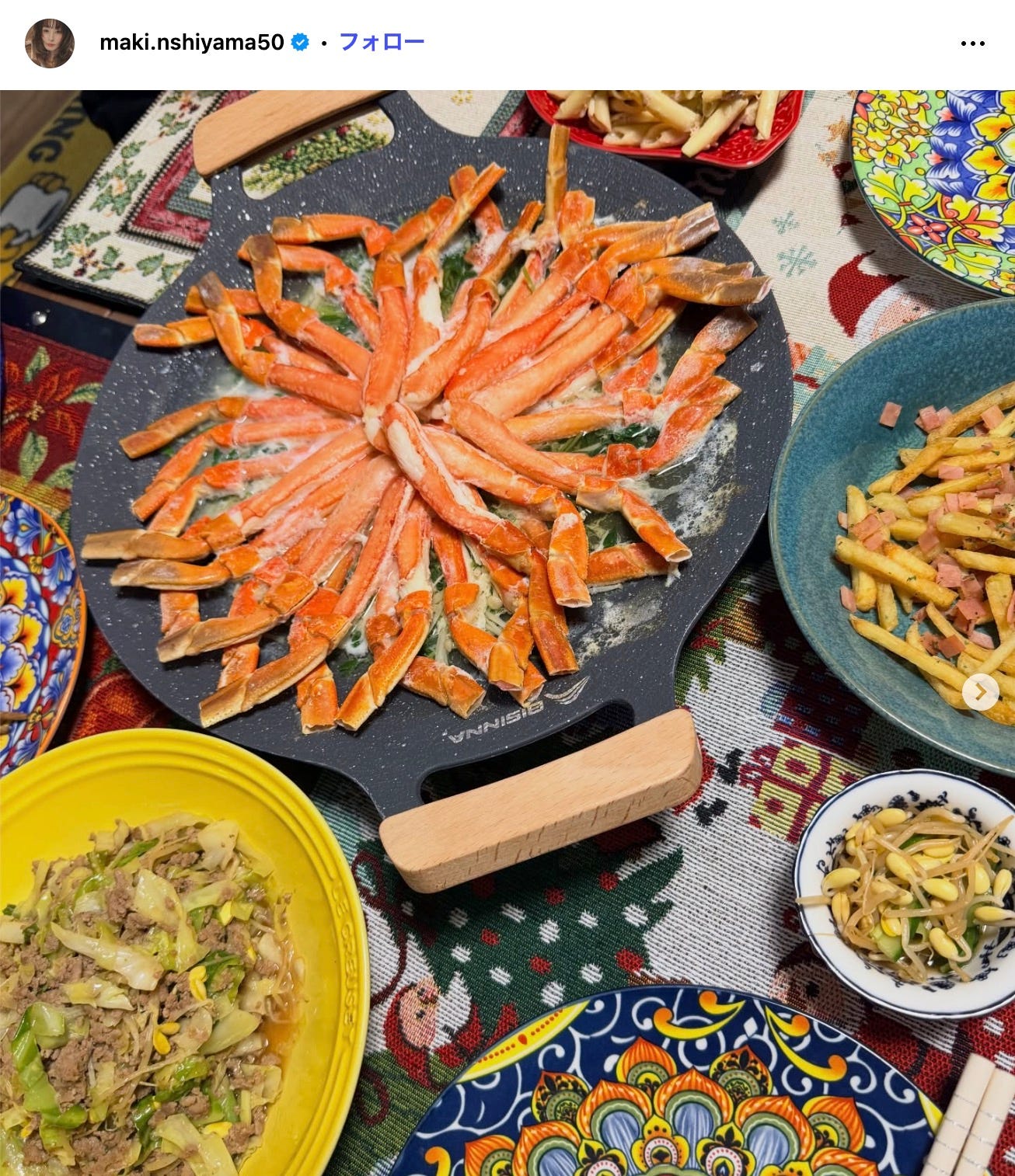 モデルの西山茉希が12月4日、自身のInstagramを更新。カニ料理を中心とした食卓を公開した。