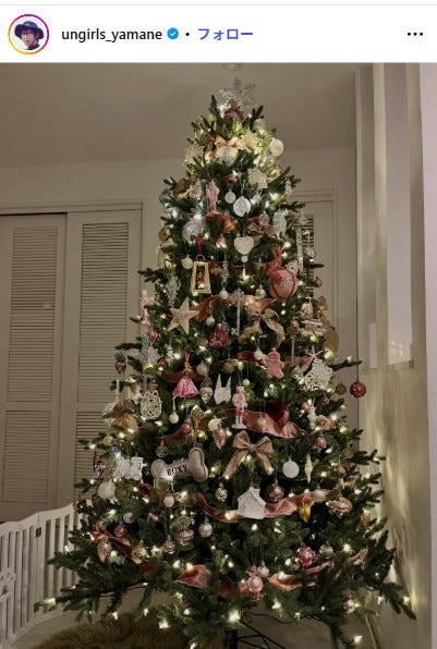 アンガールズ山根、妻が飾り付けた豪華クリスマスツリー公開「センスが素晴らしい」「こだわりが伝わる」と反響