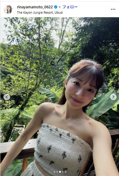 山本里菜、チューブトップでバリ島満喫「スタイルレベチ」「私服のセンスが天才的」の声