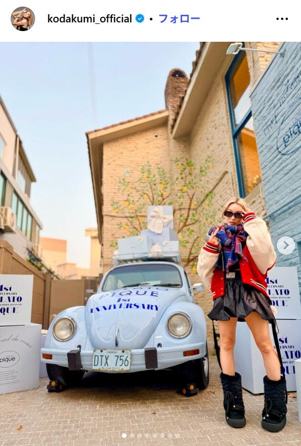 歌手の倖田來未が12月7日、自身のInstagramを更新。韓国でのミニボトム姿を公開した。