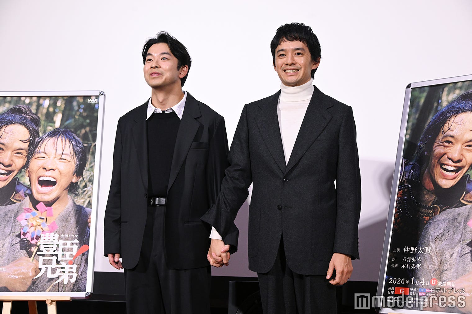 俳優の仲野太賀と池松壮亮が12月8日、都内で開催されたNHK大河ドラマ「豊臣兄弟!」(2026年1月...