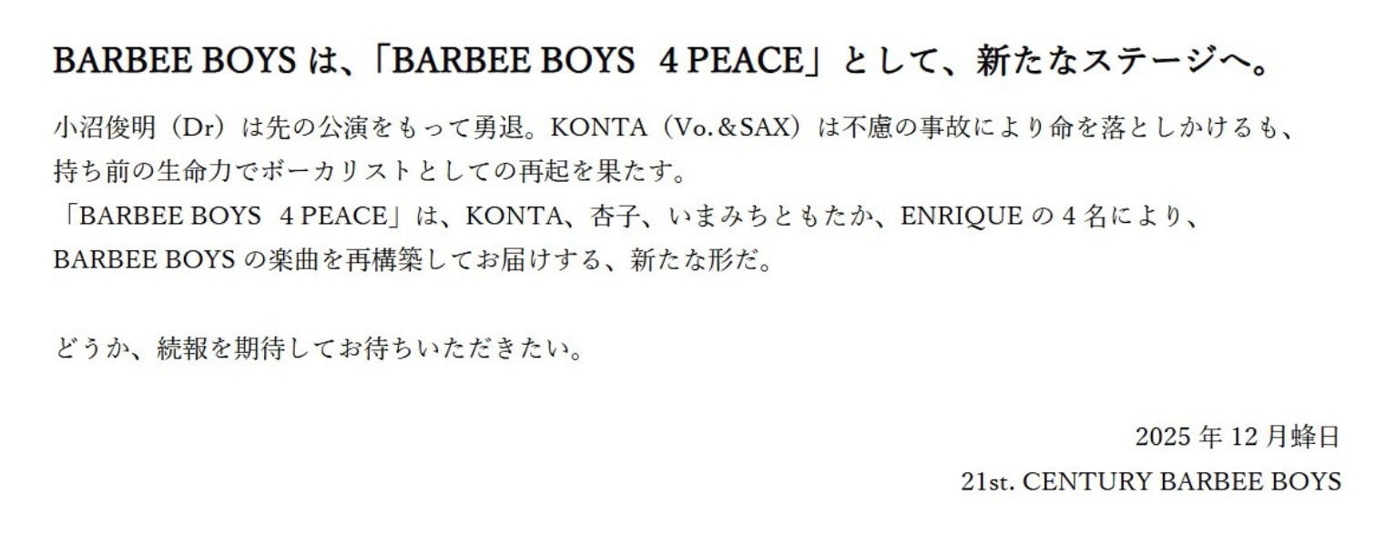 BARBEE BOYS公式SNSより
