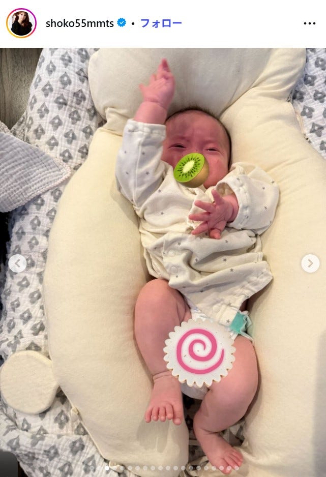 中川翔子「びっくり」な息子の斬新ポーズ公開「可愛すぎて二度見」「お顔がしっかりしてきた」の声