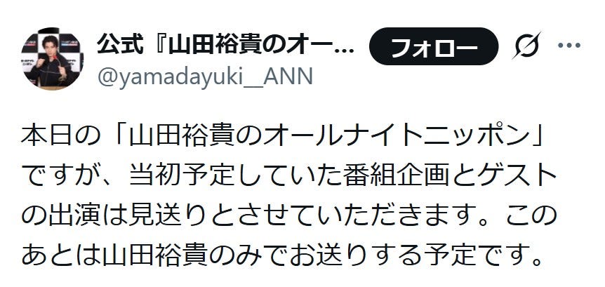 「山田裕貴ANN」地震発生を受け急遽放送内容変更 山田の声に救われたという声多数「ちょっとでも安心して眠れる夜がくることを祈っています」