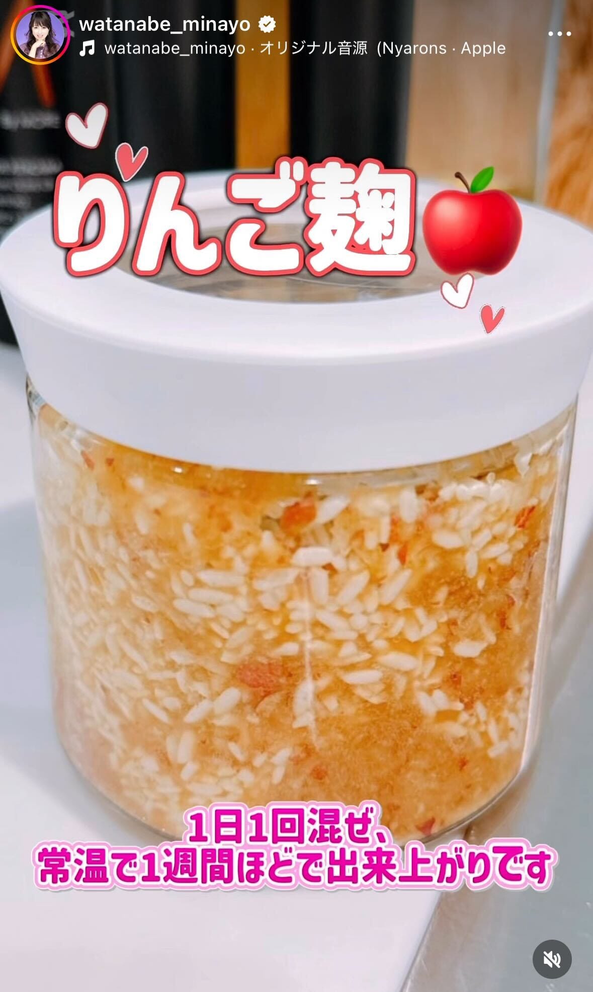 元おニャン子クラブでタレントの渡辺美奈代が8日、自身のInstagramを更新。手作りの「りんご麹」...