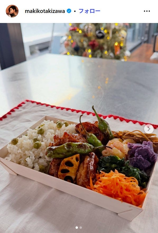 モデルの滝沢眞規子が12月9日、自身のInstagramを更新。彩り豊かなグリーンピースご飯弁当を公...