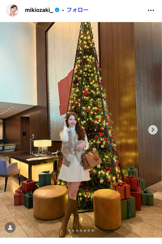「バチェロレッテ2」尾崎美紀、膝上ミニスカコーデにファン悶絶「美脚に釘付け」「スタイル抜群」