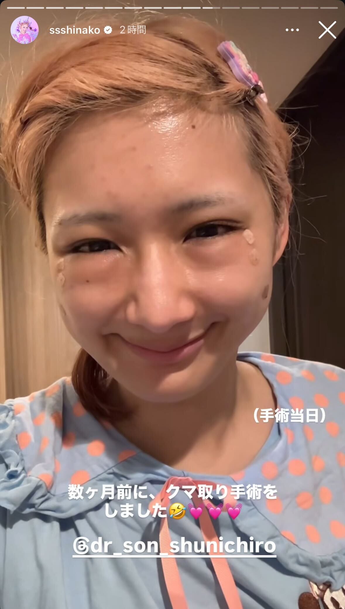 クリエイターのしなこが12月10日、自身のInstagramストーリーズを更新。クマ取り手術を受けた...