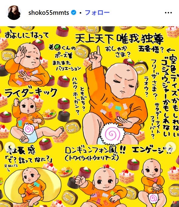 中川翔子「弟くんのポーズが面白すぎて」双子の夜の様子に反響「大物になりそう」「将来が楽しみ」の声