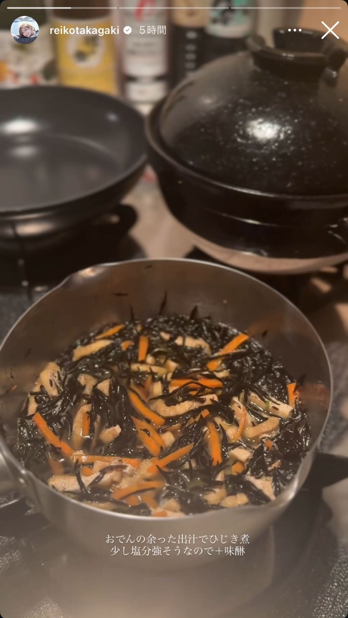 モデルの高垣麗子が12月12日、自身のInstagramストーリーズを更新。おでんの出汁を使った煮物...