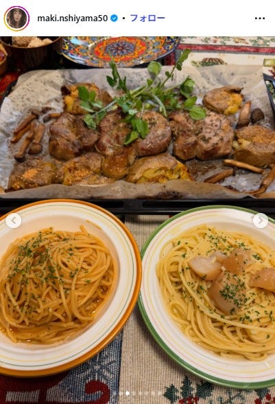 モデルの西山茉希が12月12日、自身のInstagramを更新。オーブン焼きとパスタを披露し、話題を...