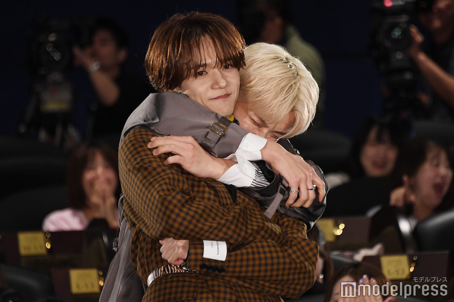 木村柾哉の全力バックハグにご満悦の中島颯太(C)モデルプレス