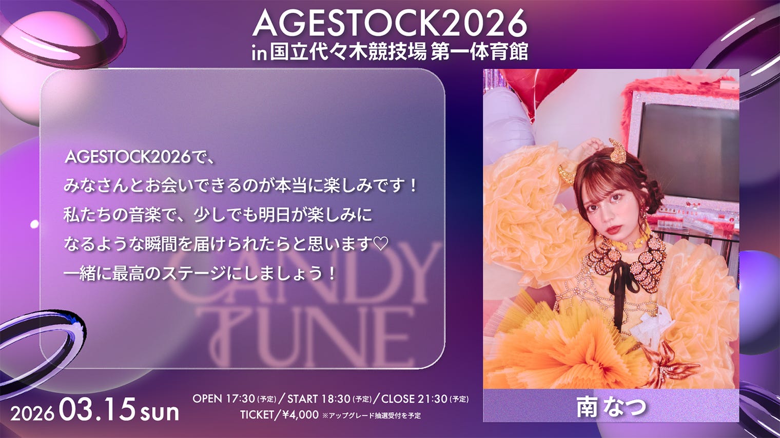 2026年3月15日に開催される「AGESTOCK2026 in 国立代々木競技場 第一体育館」より...