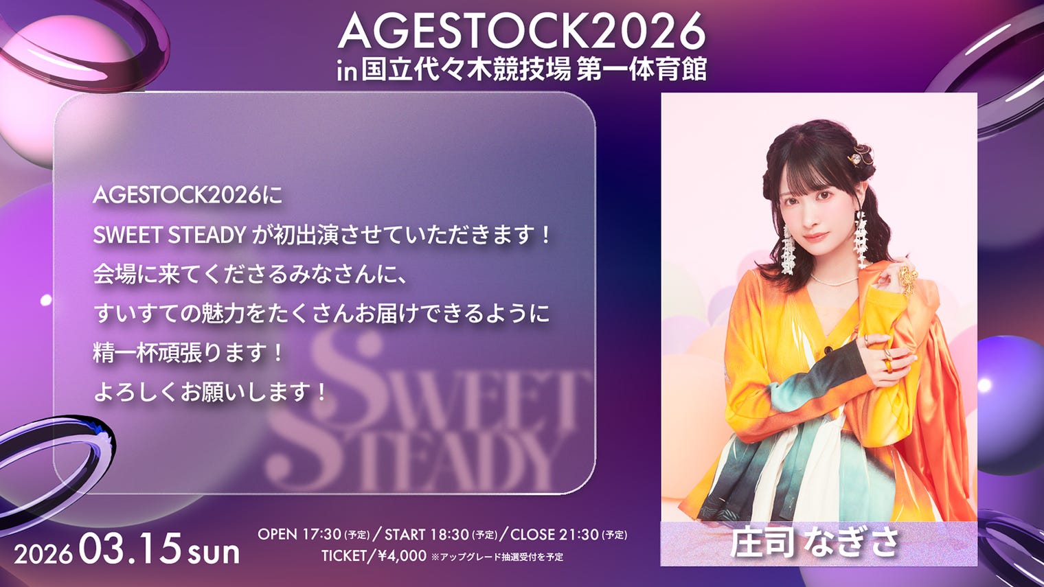 2026年3月15日に開催される「AGESTOCK2026 in 国立代々木競技場 第一体育館」より...