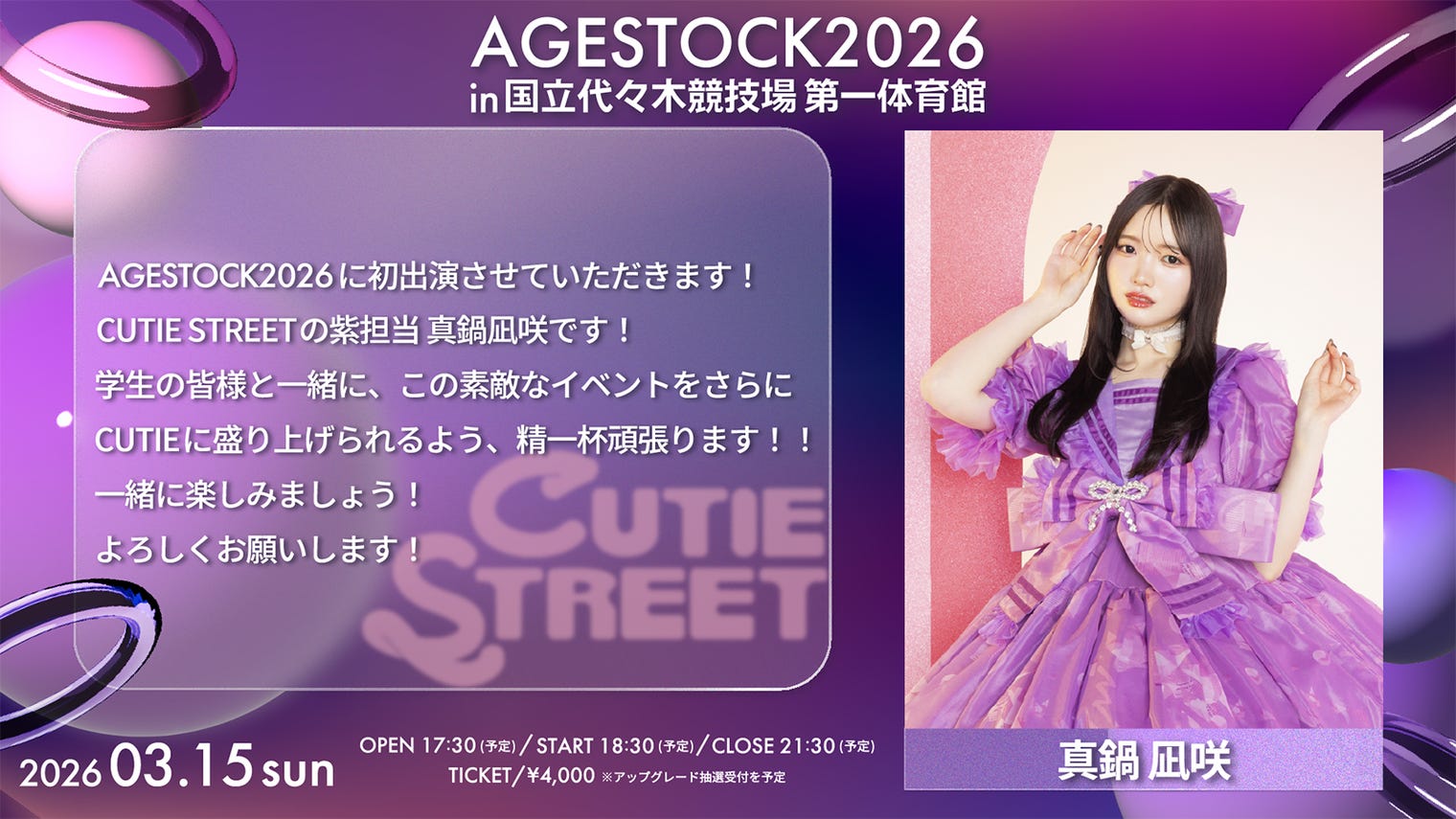 2026年3月15日に開催される「AGESTOCK2026 in 国立代々木競技場 第一体育館」より...