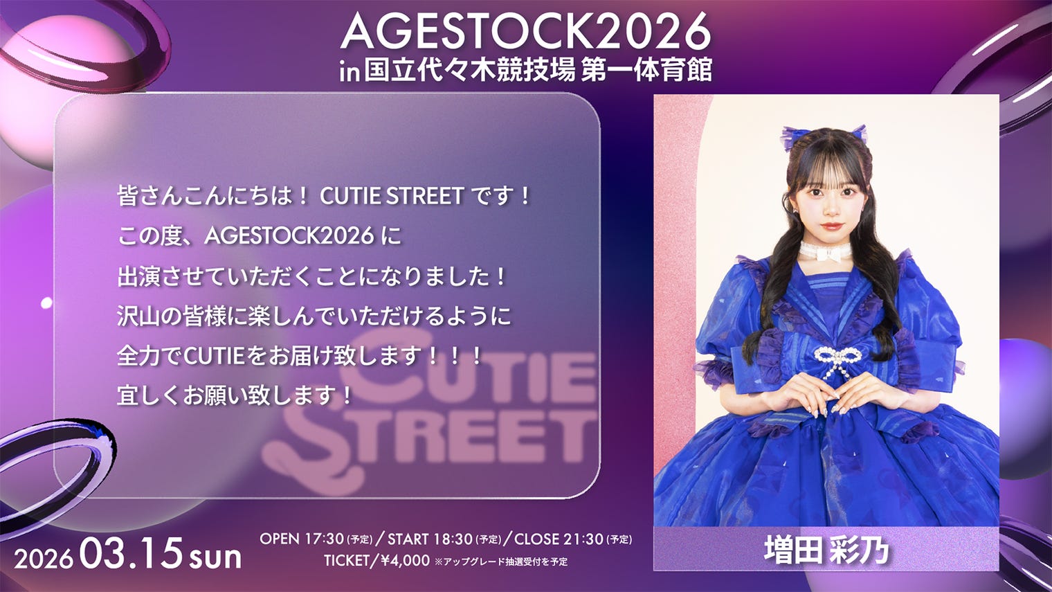 2026年3月15日に開催される「AGESTOCK2026 in 国立代々木競技場 第一体育館」より...