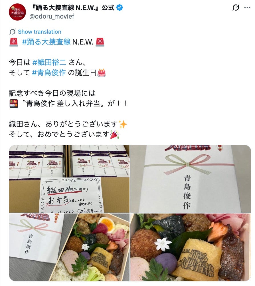 織田裕二「踊る大捜査線」撮影現場への豪華差し入れ話題「熨斗まで粋」「太っ腹で凄い」