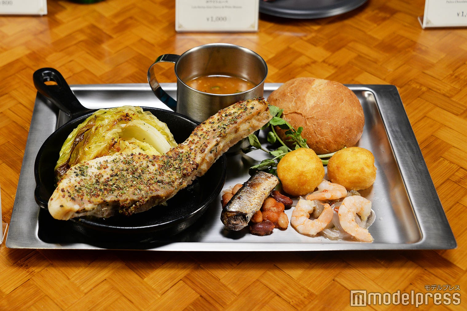焚き火料理 ポーク、ワイルドハーブ、シルドニンニク(C)モデルプレス