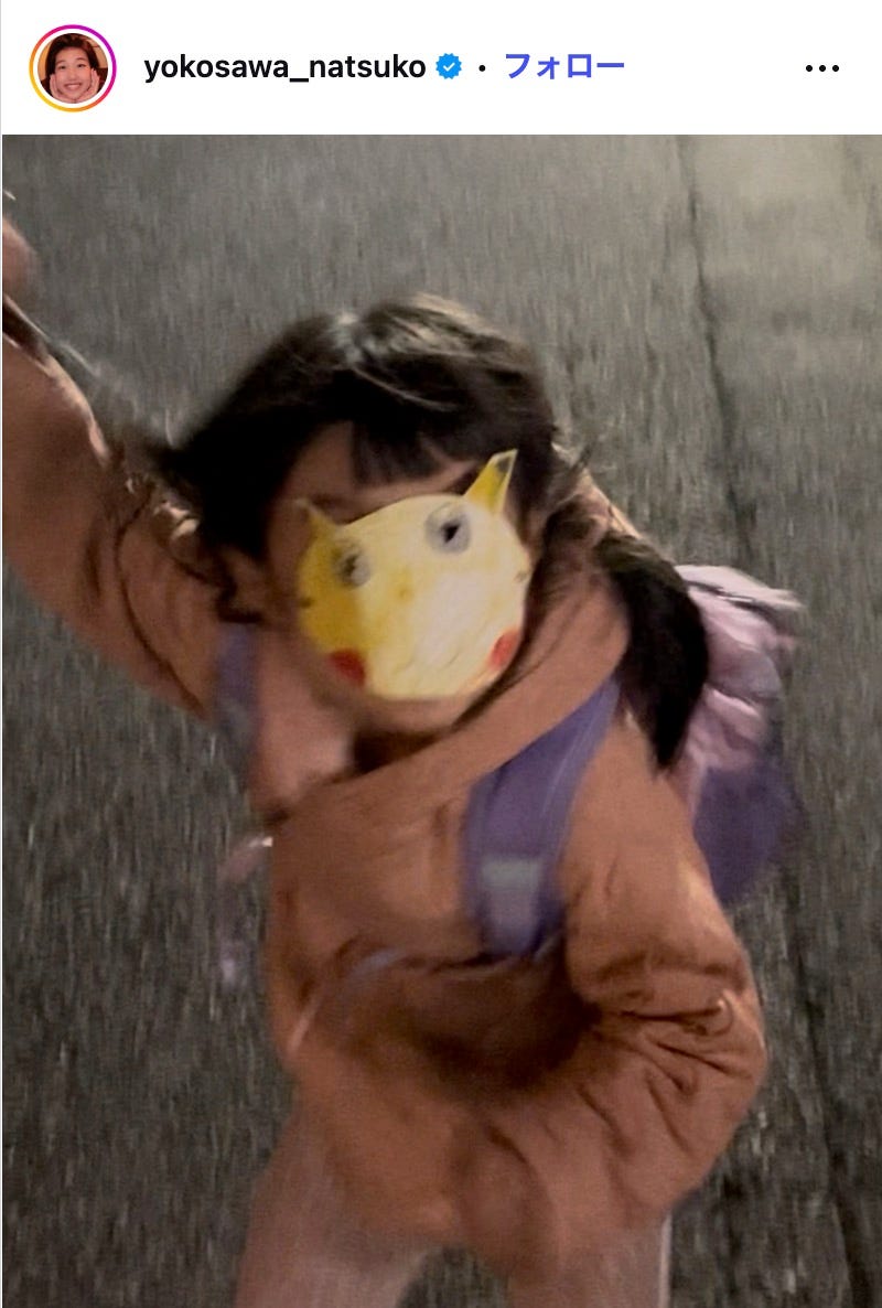 お笑いタレントの横澤夏子が12月17日、自身のInstagramを更新。長女との帰り道の様子を公開し...