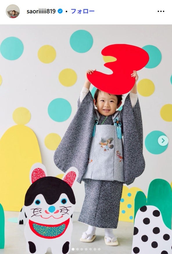 木村沙織、Dream Aya撮影・長男の七五三ショット公開「愛情が詰まってる」「お父さん似?」と反響
