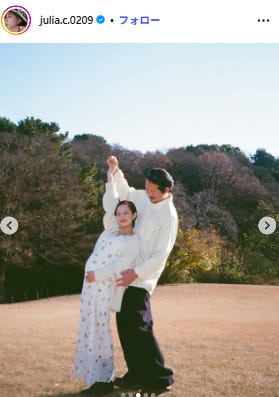 人気インフルエンサーJULIA、第1子妊娠を発表 イケメン夫との密着ショット&ふっくらお腹披露