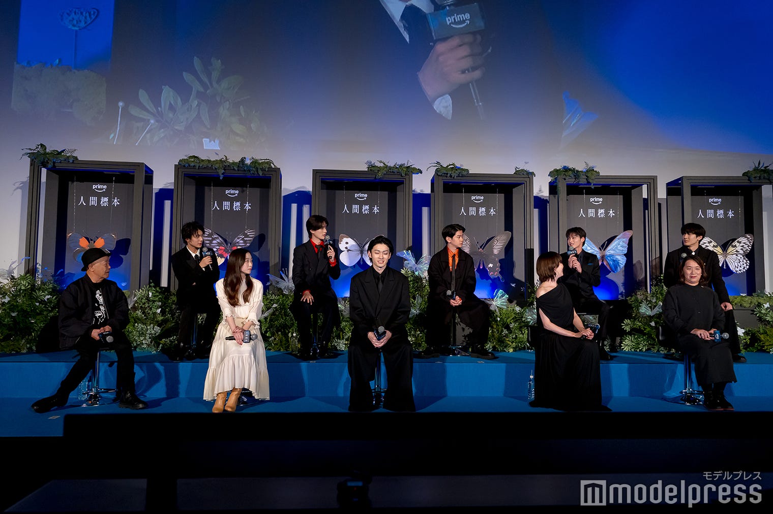 (後列左から)荒木飛羽、山中柔太朗、黒崎煌代、松本怜生、秋谷郁甫(前列左から)廣木隆一監督、伊東蒼、市川染五郎、宮沢りえ、湊かなえ氏(C)モデルプレス
