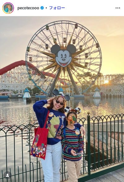 peco、7歳息子との海外ディズニー2ショット公開「身長差が微笑ましい」「2人ともお洒落」の声