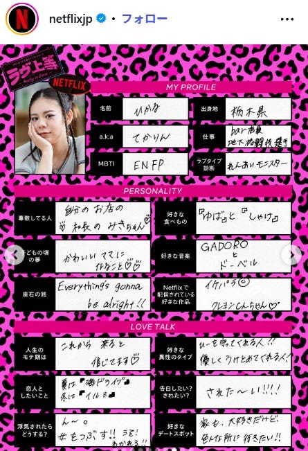 Netflixヤンキー恋リア「ラヴ上等」メンバーの直筆プロフ公開 個性爆発で話題沸騰「文字のギャップすごい」「モザイクされてるの初めて見た」