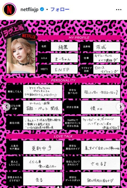 Netflixの公式Instagramが、12月18日に更新された。ヤンキー恋愛リアリティショー「ラ...