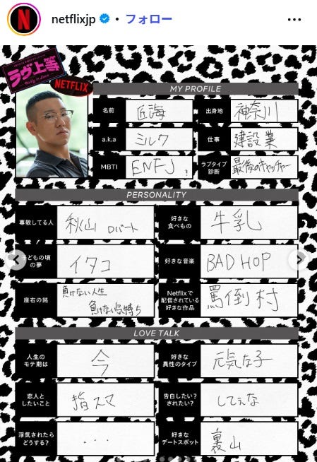 Netflixヤンキー恋リア「ラヴ上等」メンバーの直筆プロフ公開 個性爆発で話題沸騰「文字のギャップすごい」「モザイクされてるの初めて見た」