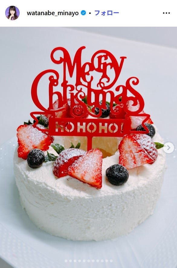 元おニャン子・渡辺美奈代、100均グッズ使用の手作りクリスマスケーキ披露「お店のケーキみたい」「可愛くて素敵」と反響