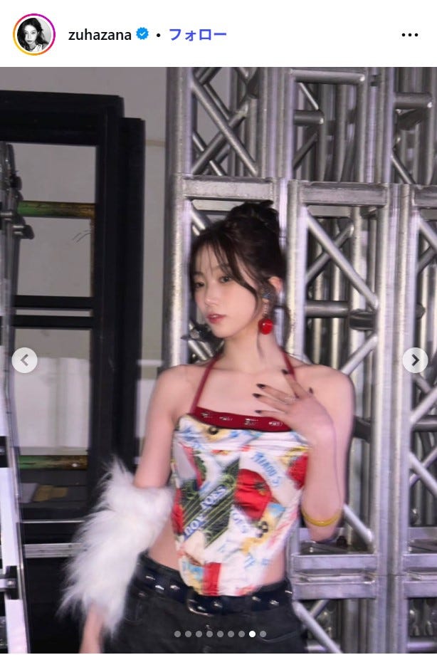 LE SSERAFIMカズハ、色白素肌際立つ衣装姿にファン熱狂「着こなせるのさすが」「スタイル抜群」