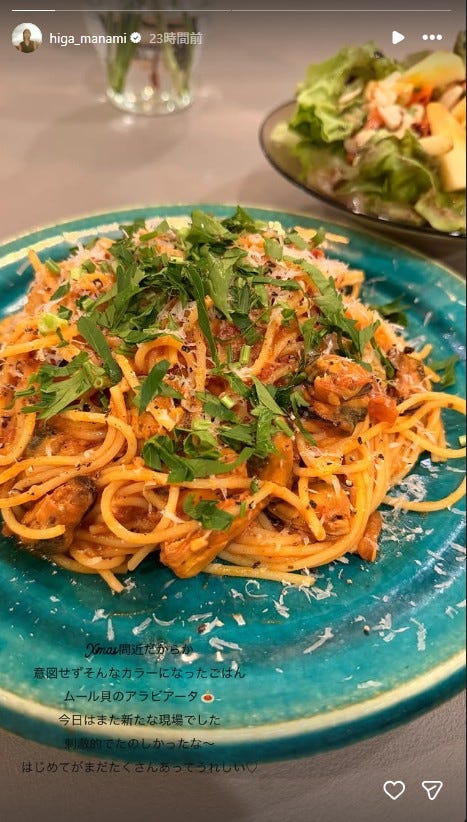 比嘉愛未、パスタ&サラダ並んだクリスマスカラーの食卓公開「レストランみたい」「テンション上がる」の声