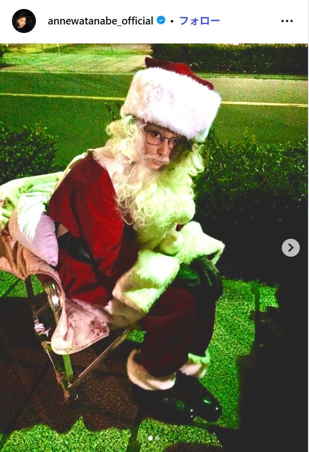 女優の杏が12月25日、自身のInstagramを更新。本格的なサンタクロースのコスプレ姿を披露し、...