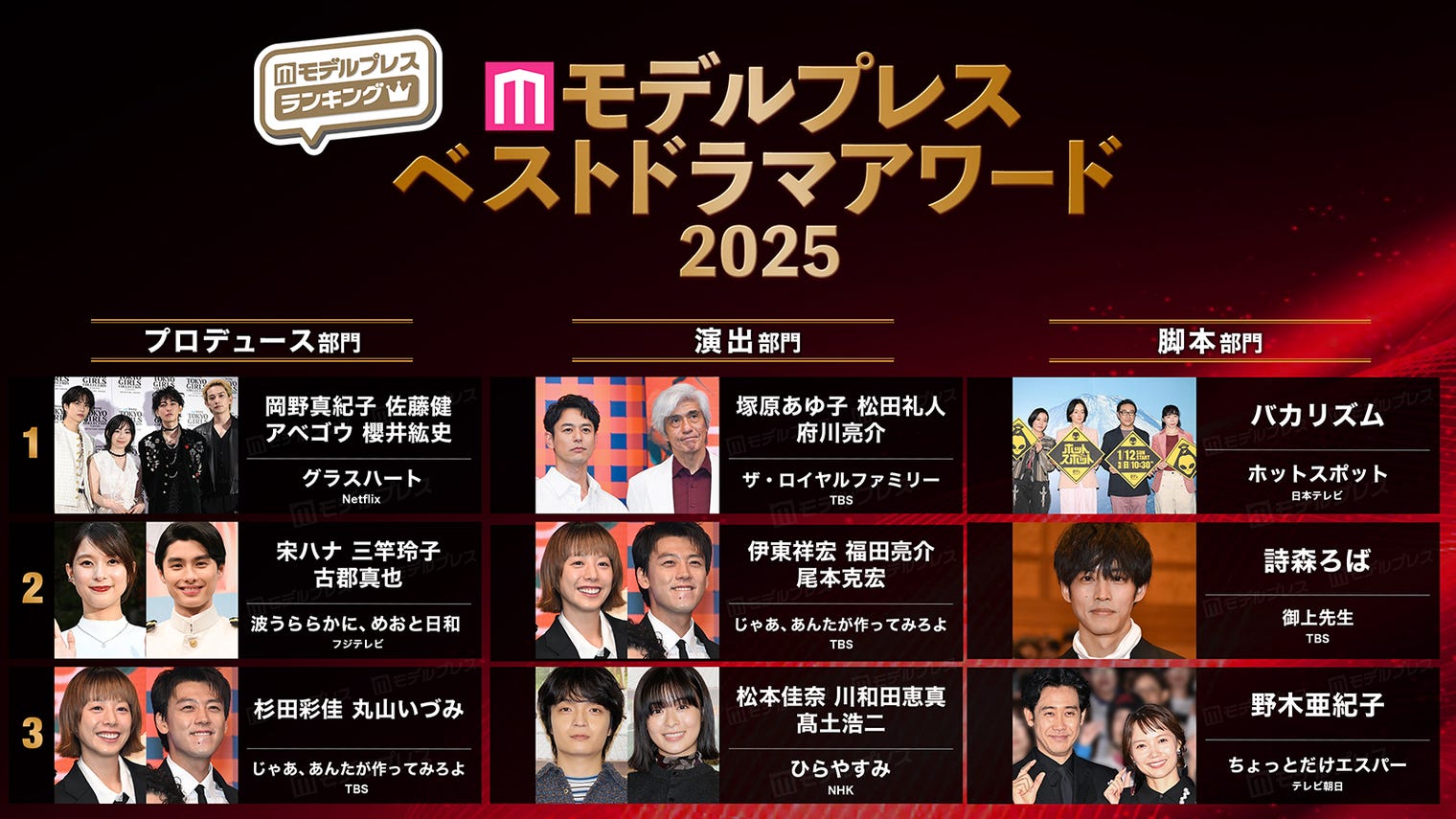 「プロデュース」部門 、「演出」部門、「脚本」部門トップ3(C)モデルプレス