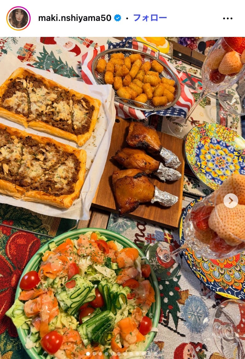 モデルの西山茉希が12月25日、自身のInstagramを更新。クリスマス料理を公開し、注目を集めて...