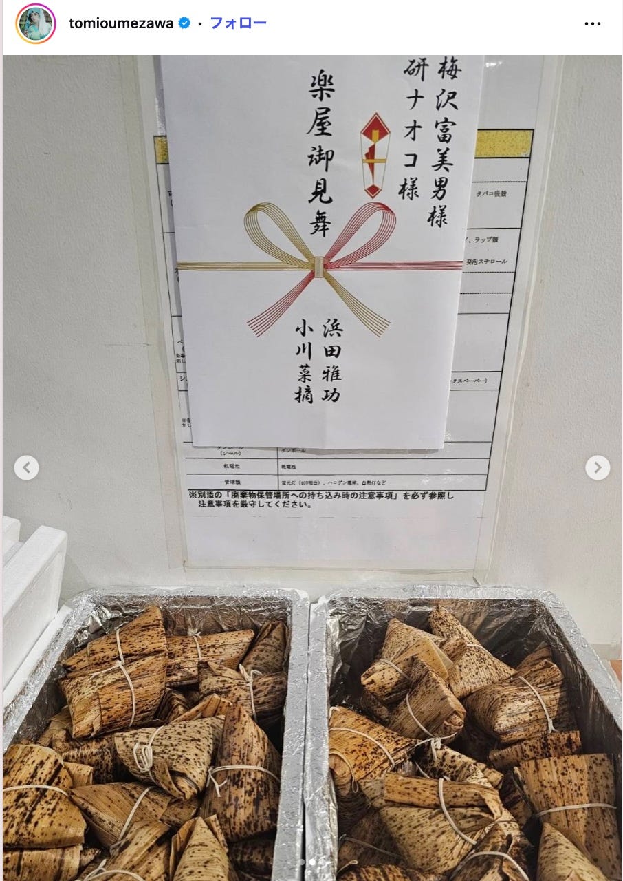 浜田雅功&小川菜摘、夫婦での粋な差し入れ話題「心遣いが素敵」「食べ応えありそう」梅沢富美男が公開