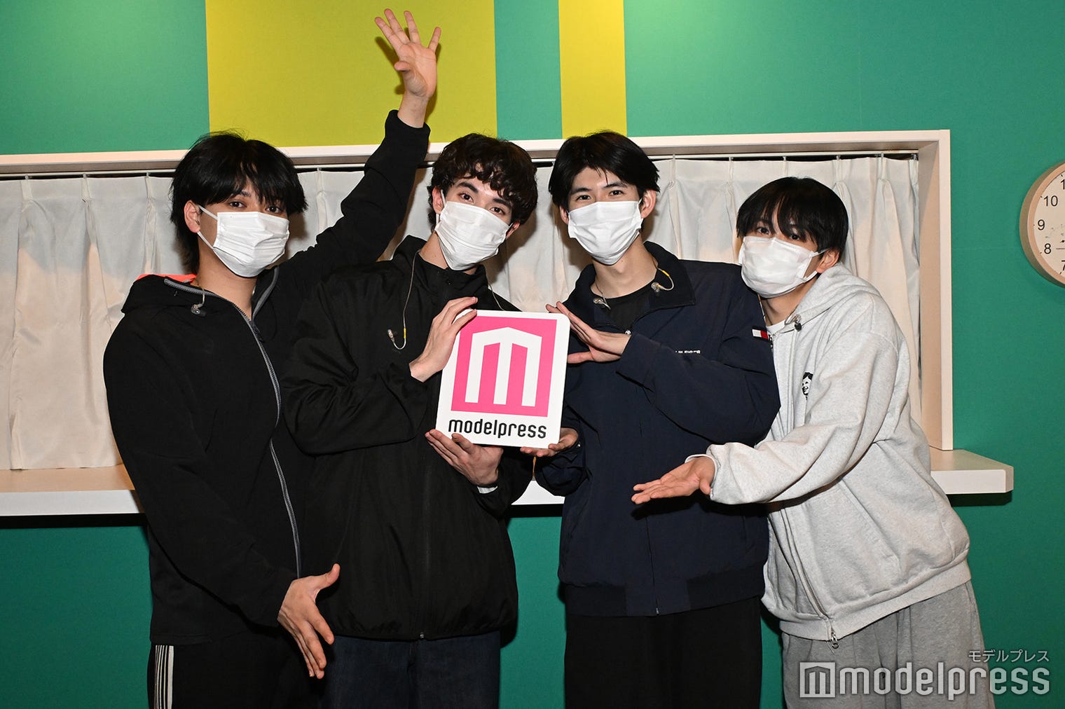 リハーサル合間に取材に応じてくれた岩崎友泰、東島京、徳永智加来、山崎光(C)モデルプレス