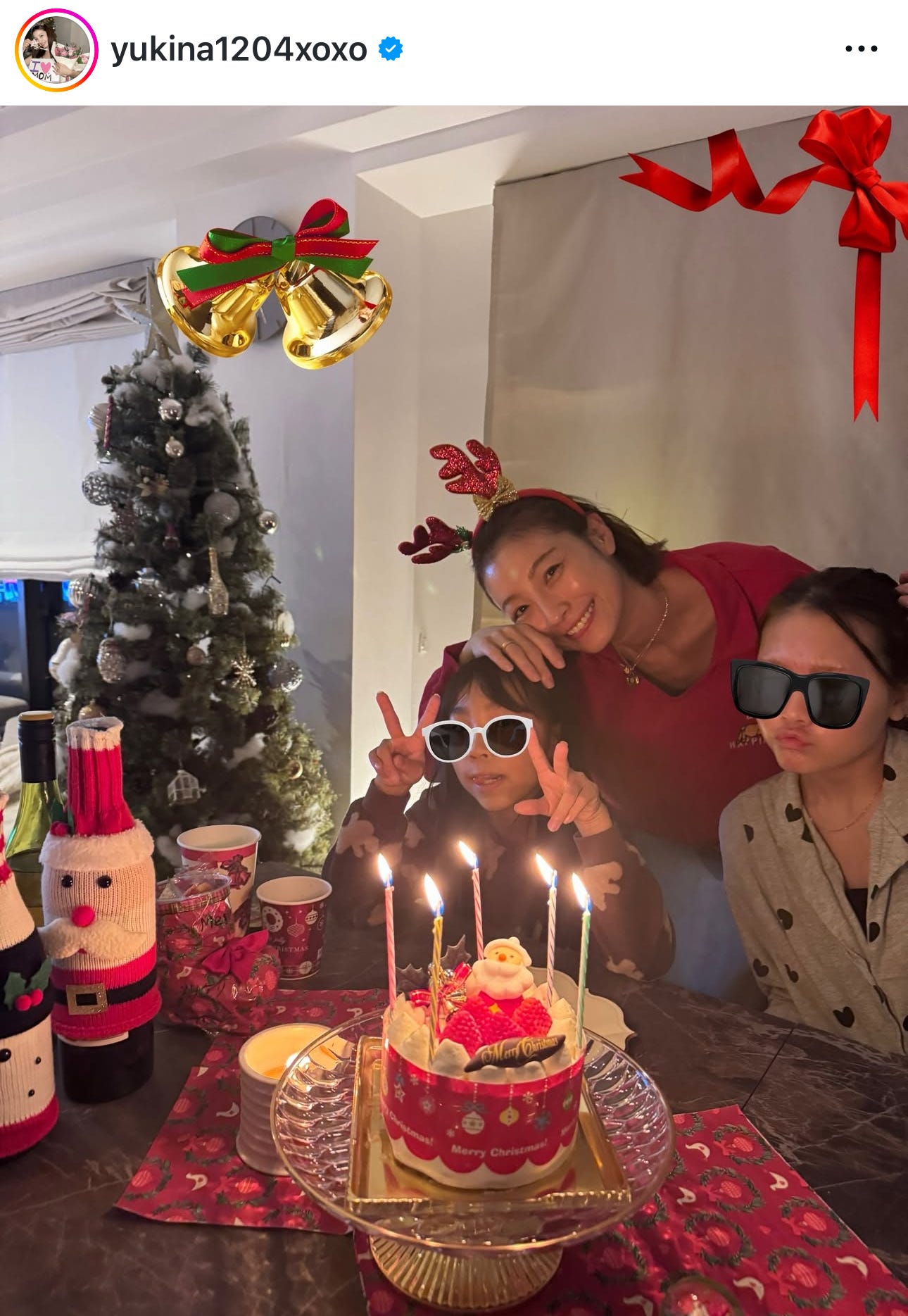 木下優樹菜、娘2人とのクリスマスディナー公開「見てるだけでほっこり」「お店みたい」と反響