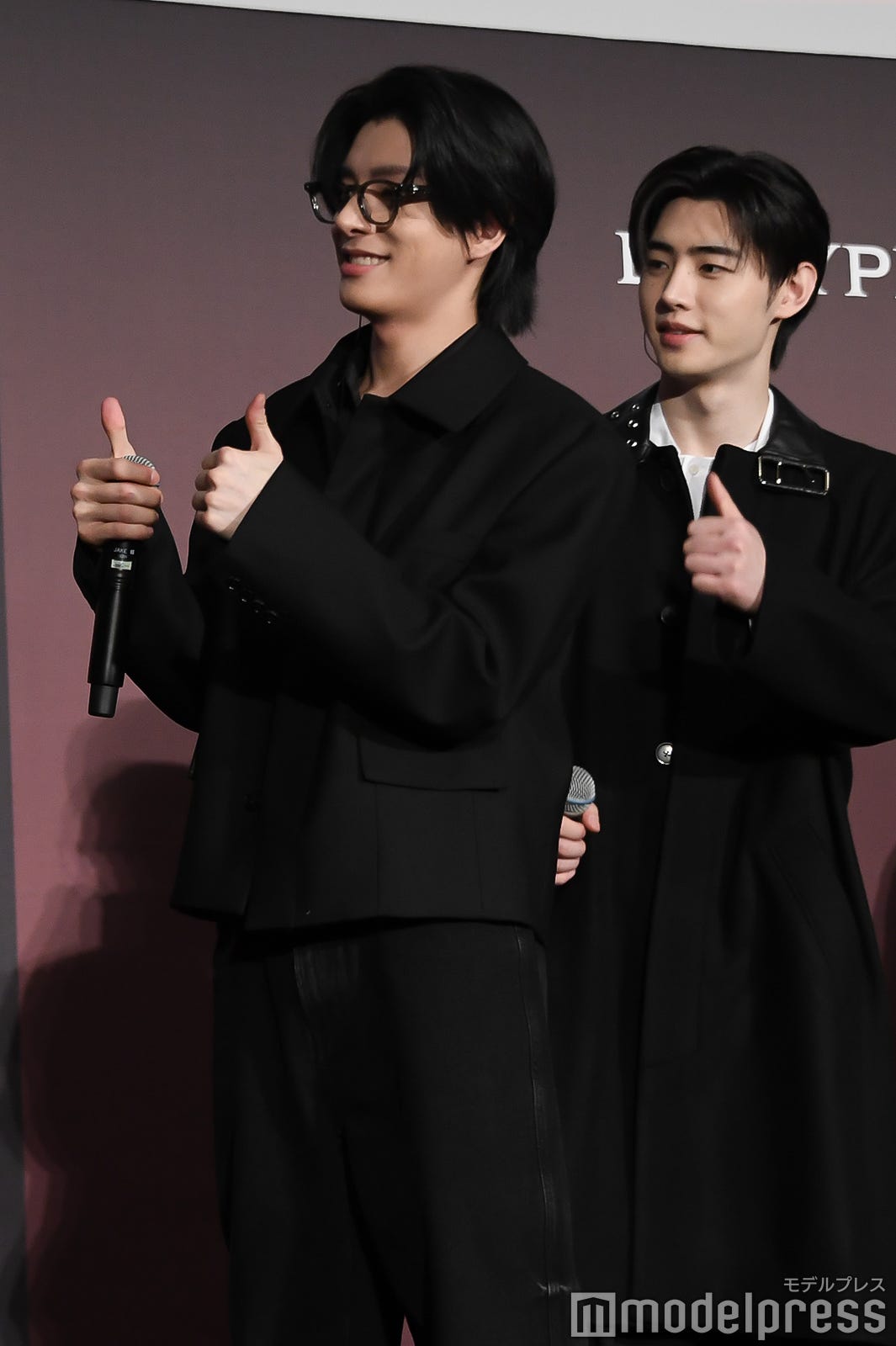 声優陣にライブに招待してほしいと言われグッドサインを送るJAKE(ジェイク)、SUNGHOON(ソンフン)(C)モデルプレス