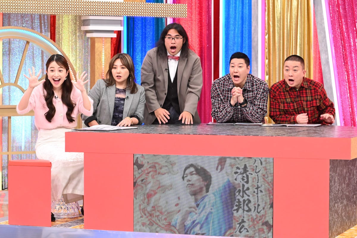 日比麻音子アナ、野呂佳代、中岡創一、長田庄平、松尾駿(C)TBS