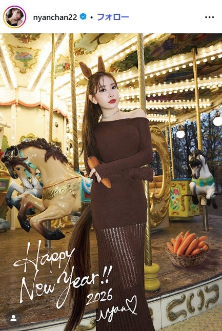 小嶋陽菜“正月恒例”干支コスプレ披露 ワンショルタイトワンピで美スタイル輝く「女神」「世界一可愛い午」