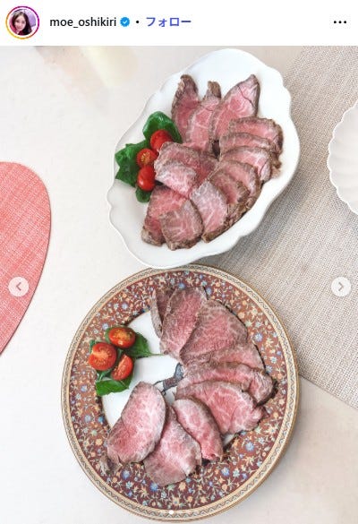 押切もえ、手作りローストビーフ披露「お店で売れるレベル」「理想のお母さん」と絶賛の声