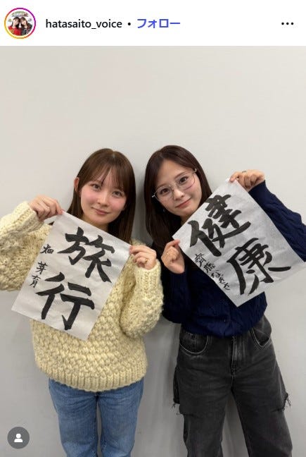 畑芽育&齊藤なぎさのオフはこんな感じ 公式Instagramより