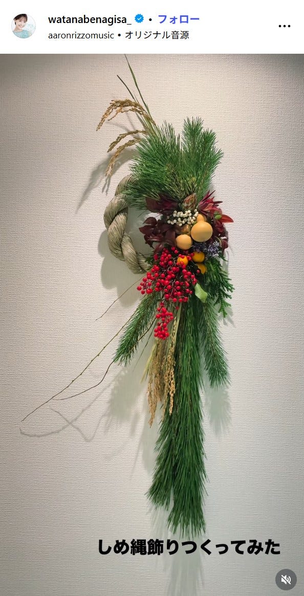 渡邊渚、手作りの本格しめ縄飾り披露「売り物みたい」「プロの腕前」と反響